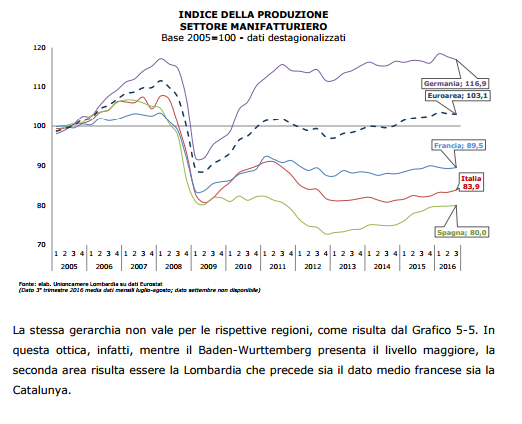 Il ciclo politico nazionale ed internazionale, da una parte, unitamente al rallentamento dell’economia internazionale, dall’altra, sono alla base di questi risultati non certamente brillanti. Più che di fronte ad un’inversione di tendenza ci si trova davanti ad una fase di assestamento, come testimoniano anche le aspettative che rimangono positive per la produzione per il IV trimestre del 2016. Il ciclo delle scorte sembra essere alla radice di questi risultati in attesa che il circolo virtuoso domanda aggregata-crescita prenda il sopravvento in modo da garantire una ripresa stabile e robusta sia sul mercato dei beni sia sul mercato del lavoro.