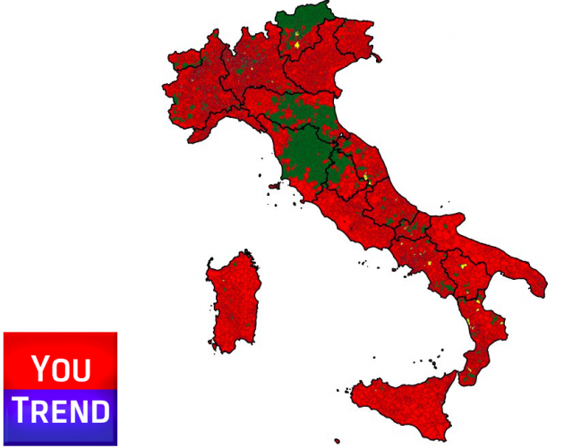 In rosso le regioni dove ha vinto il no al referendum costituzionale