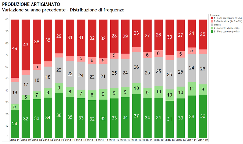 I dati presentati derivano dall’indagine relativa al secondo trimestre 2017 che ha riguardato un campione di più di 2.800 aziende manifatturiere, suddivise in imprese industriali (oltre 1.600 imprese) e artigiane (quasi 1.200 imprese).
