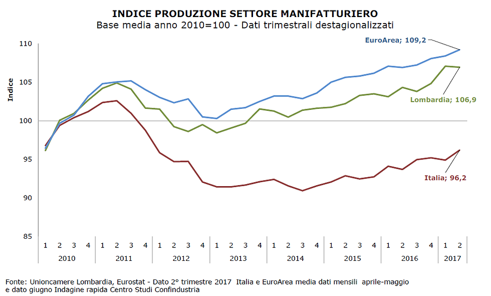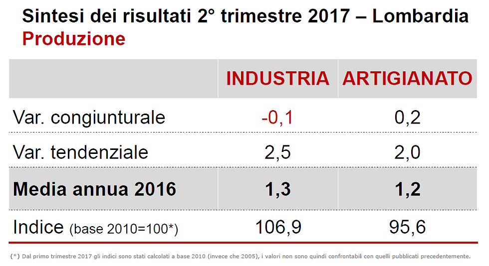 Riportiamo dalla conferenza stampa di presentazione delle indagini congiunturali sulla produzione lombarda riferita al 2° trim. 2017 - a cura dell'Ufficio Stampa UnionCamere Lombardia (il 27 luglio scorso)
