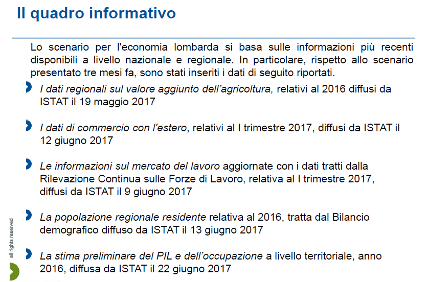 Infine alcune slide di scenario previsionale sull'economia lombarda, a cura di Prometeia: