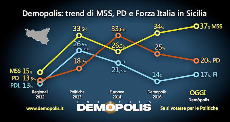 La nota continua: "In Sicilia le cose si stanno muovendo molto diversamente rispetto al modello proposto dal sindaco di Palermo Leoluca Orlando di costruire uno schema civico vincente, anche su base regionale, incentrato sulla necessità del cambio di rotta delle politiche siciliane, come richiesto dai cittadini dell'Isola. I partiti, invece, stanno giocando una competizione nazionale: da un lato fondata su uno schema di alleanze ambigue e innaturali rispetto al mondo progressista, e dall'altro basato sull'ennesima riproposizione di uno schema di testimonianza, seppur nobile, già fallito in passato".