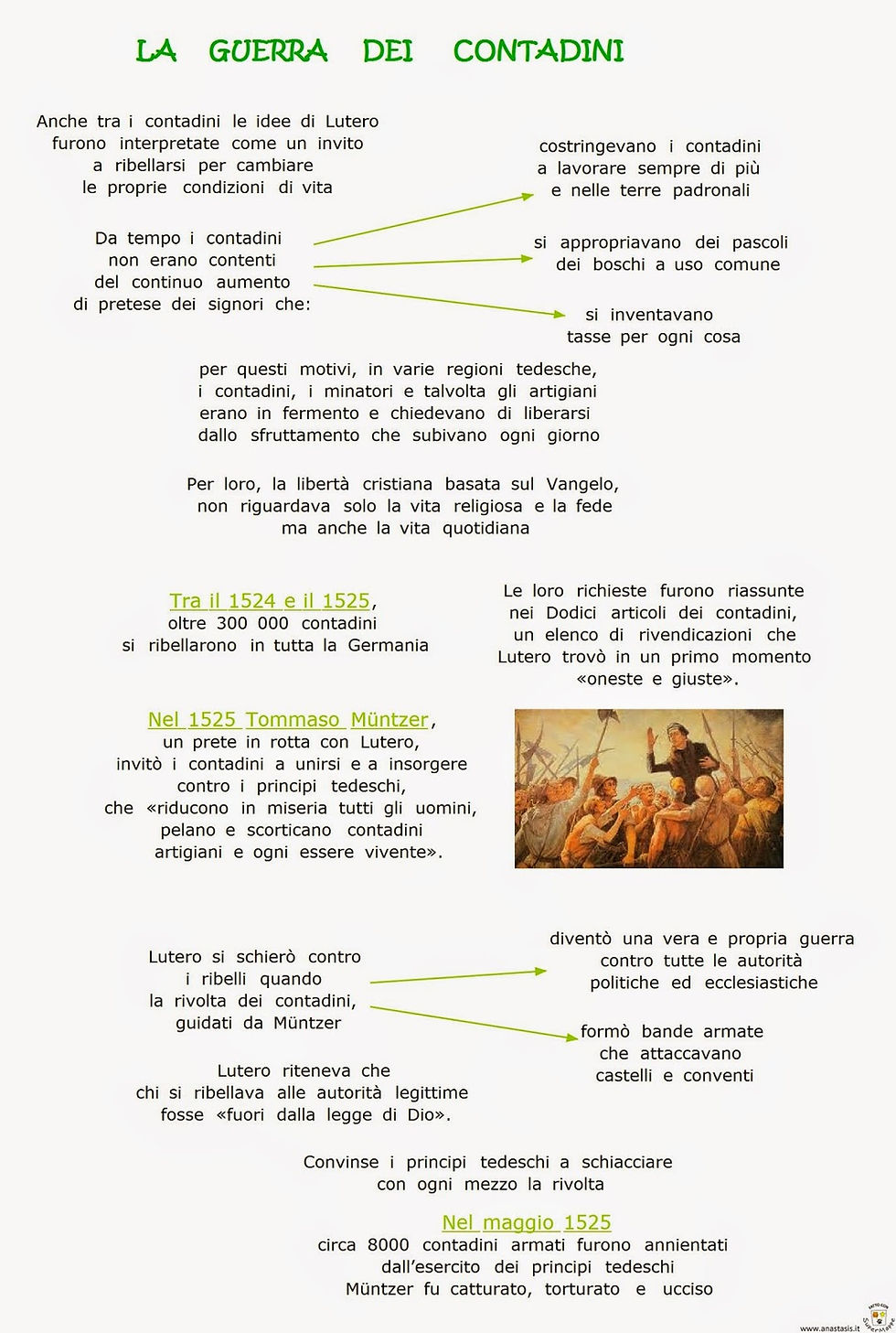 Non è un caso che lo stesso Lutero si scagliò violentemente contro le diverse rivolte del periodo che nell’area germanica cercarono di mettere in discussione lo stato di diritto, con la violenza. Esso si schierò apertamente con i Principi.