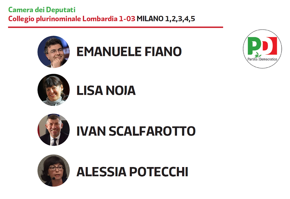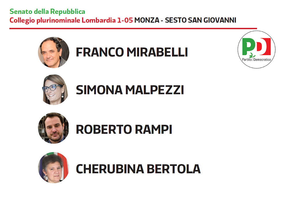 Candidati PD alla Camera ed al Senato area metropolitana milanese