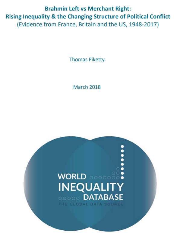 Alle elezioni del 4 marzo ci si è stupiti che il PD sia andato bene quasi solo nei quartieri migliori di Roma, Milano e Torino. L’apparente paradosso che ha attratto i cronisti non ha in realtà nulla di strano, né di particolarmente italico; nemmeno forse è passeggero. Indica il punto dove è giunta una lunga storia. Per riesaminare gli schemi con cui interpretiamo la politica, molti elementi erano già disponibili; occorreva montarli insieme. Ci prova ora Thomas Piketty, il noto autore di Il capitale nel XXI secolo (Bompiani 2014), con uno studio ricchissimo di dati, Brahmin Left vs Merchant Right: Rising Inequality and the Changing Structure of Political Conflict, accessibile sul sito www.piketty.pse.ens.fr. Mostra che sia il voto a sinistra della borghesia colta, sia la protesta popolare contro tutte le élite hanno radici profonde.