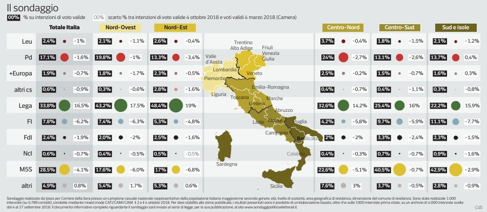 Gli altri partiti vivacchiano sui loro soliti numeri, se escludiamo un piccolo recupero di Forza Italia, che si va a prendere probabilmente quella parte di elettori di centro destra spaventati dalle conseguenze economiche del comportamento di questo governo, che ha già fatto perdere parecchi soldi agli italiani che hanno degli investimenti da parte.